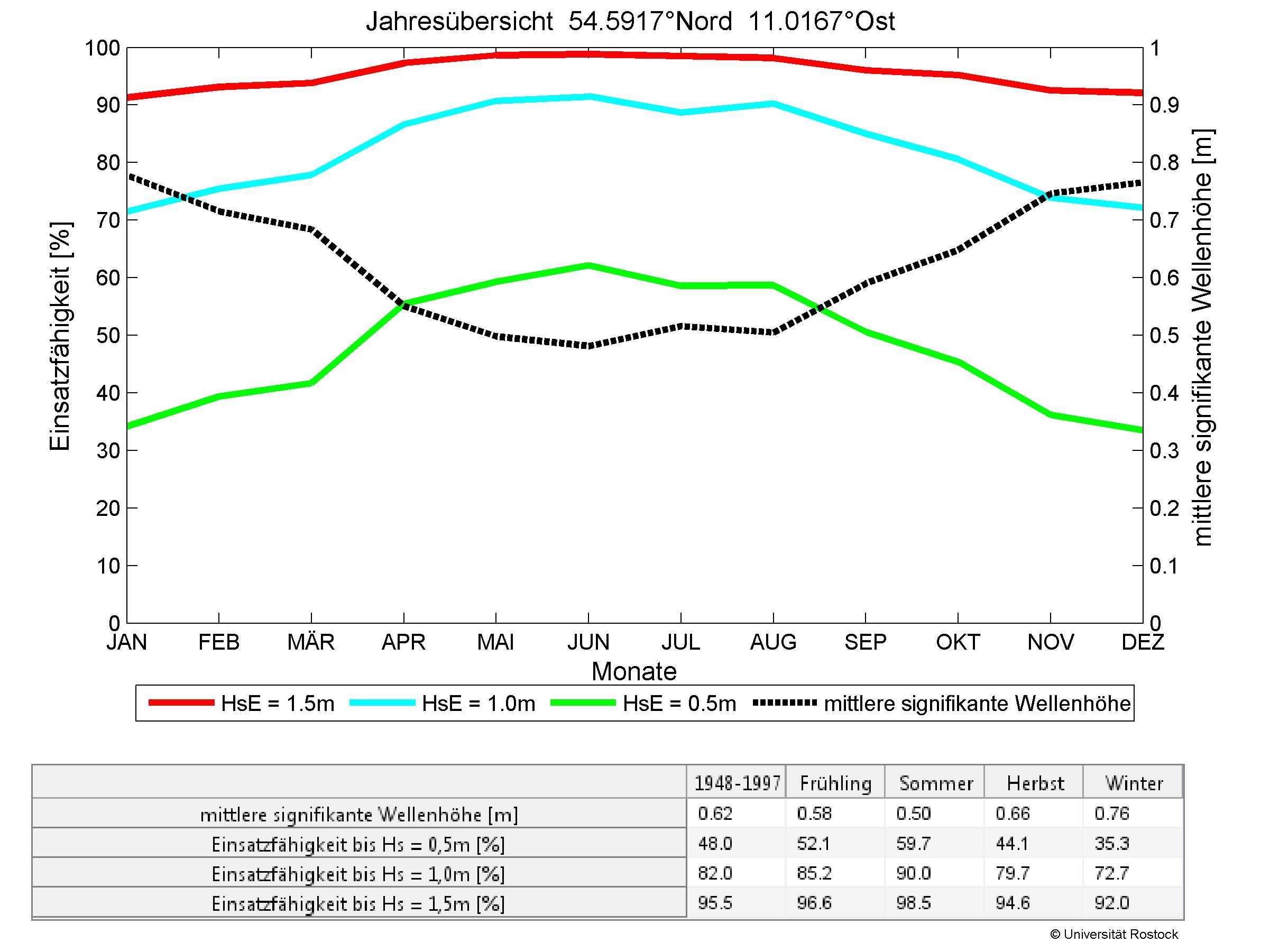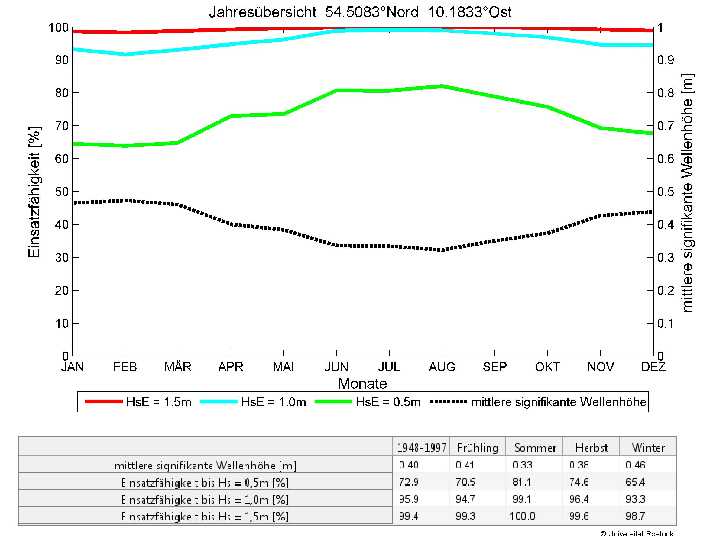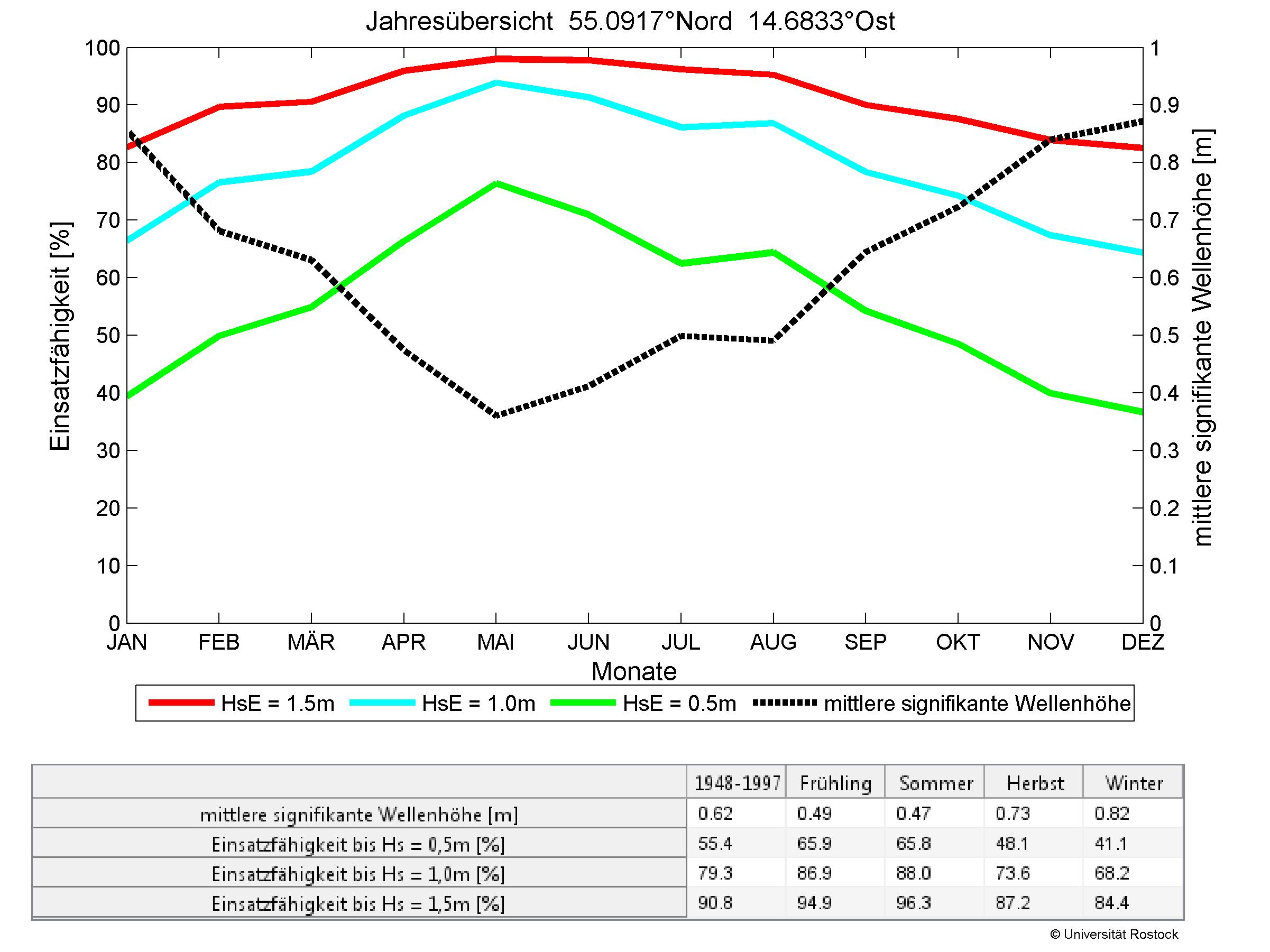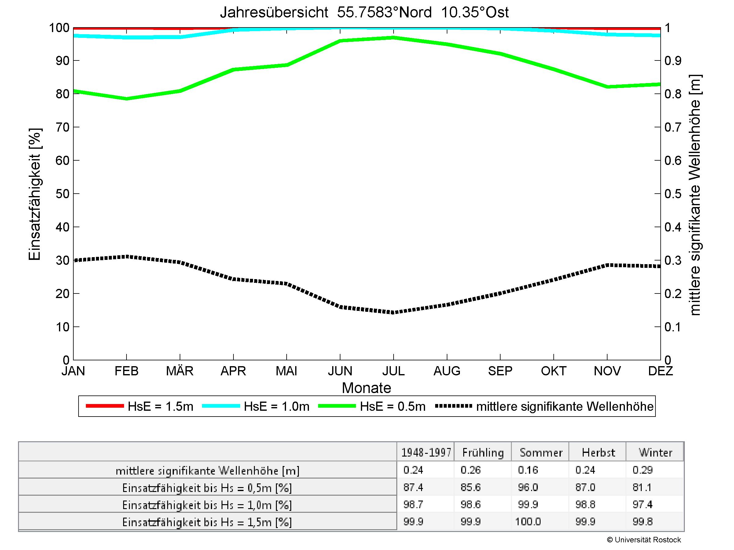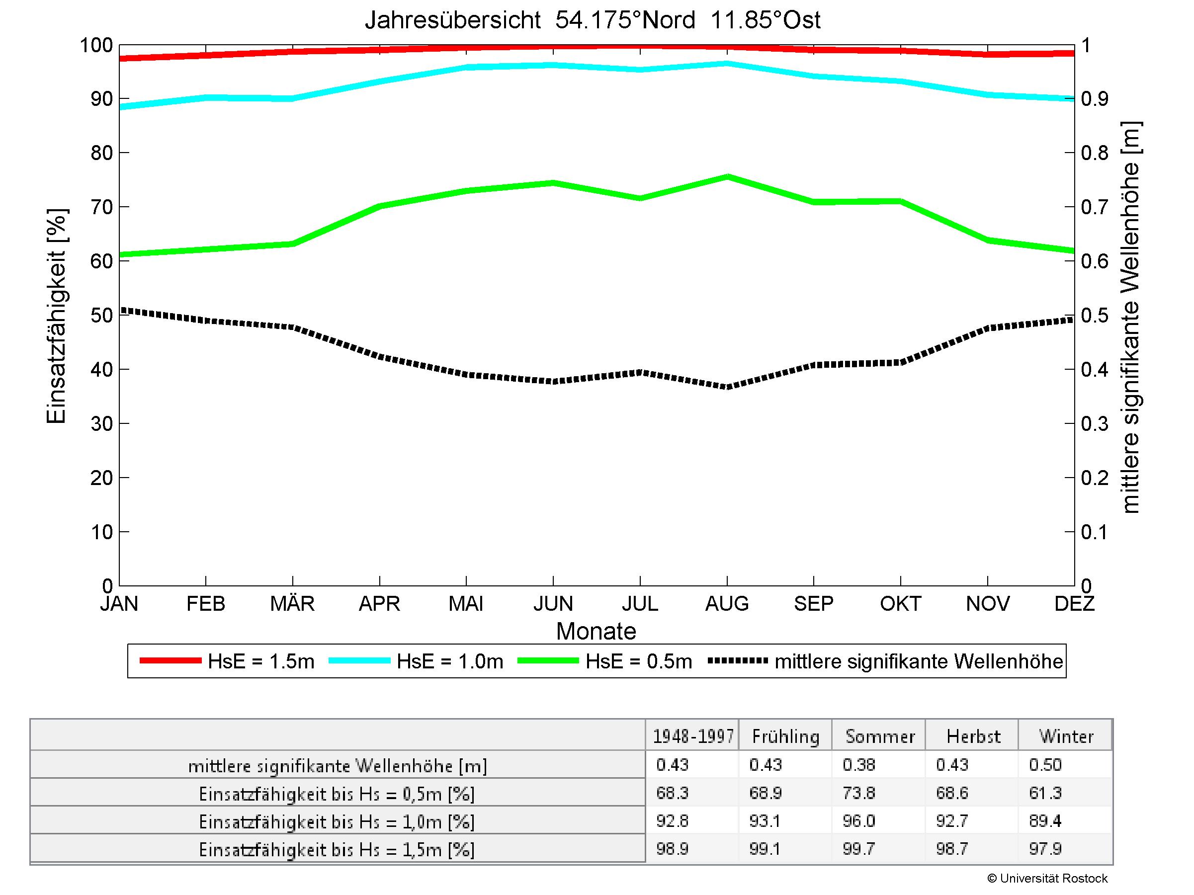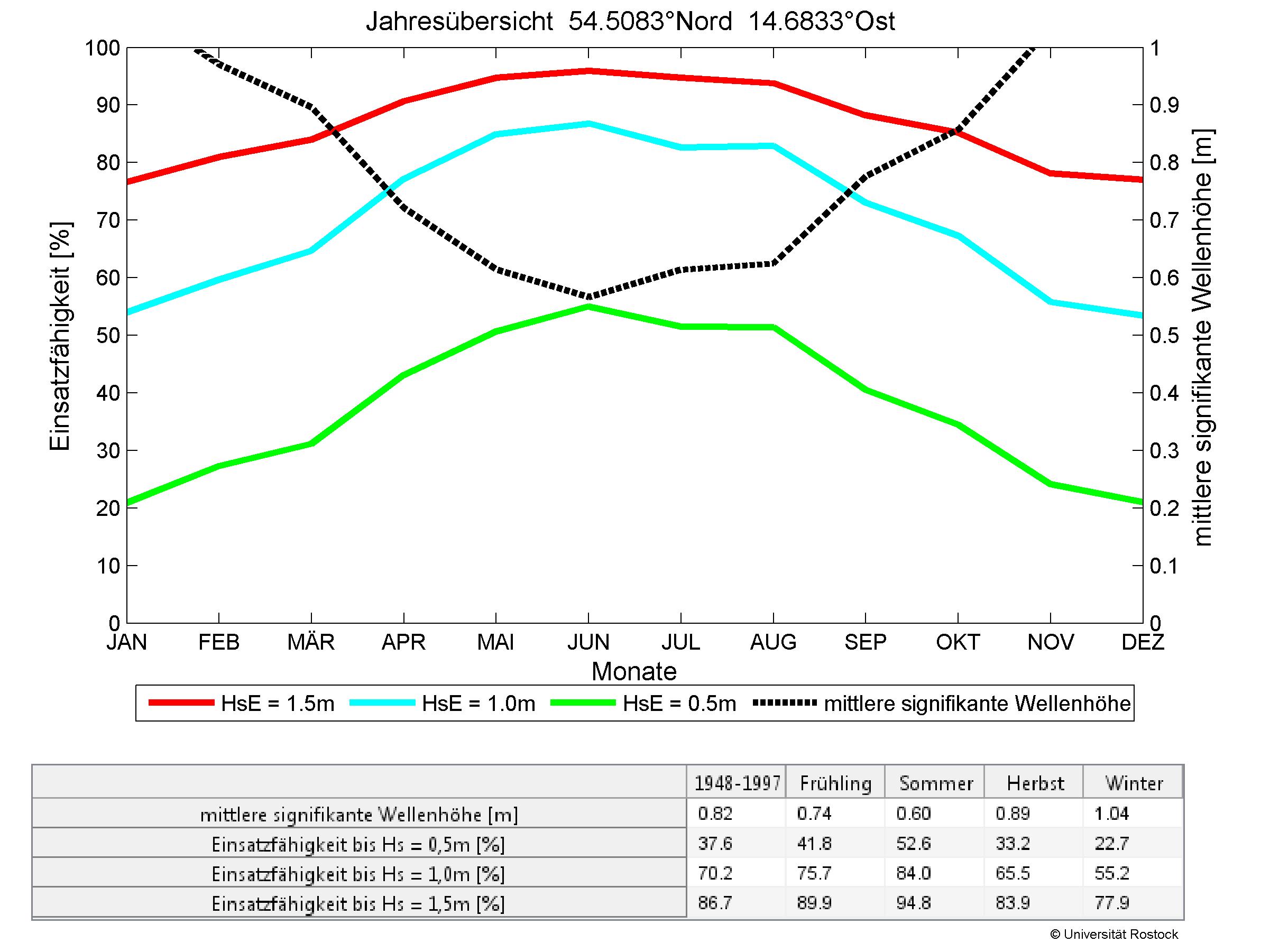 Im Forschungsprojekt MUSTOK (Jensen 2009) wurden unterschiedliche Modelle zur Ermittlung von extremen Wellenhöhen und Wasserständen an der Deutschen Ostseeküste ermittelt. Im Teilprojekt SEBOK B wurden auf Grundlage der zuvor beschriebenen Winddaten die stündliche signifikante Wellenhöhe für die Deutsche Ostsee ermittelt (Schlamkow & Fröhle 2009). Die Seegangssimulationen wurden mit dem Seegangsmodel SWAN erstellt (Booij et al. 2001). Für die Simulationen wurde eine Bathymetrie der Ostsee mit einer Auflösung Δx ≈ Δy ≈ 5,5 nm verwendet (Seifert et al. 2001). Zur Qualitätsprüfung wurden die Modeldaten mit vorhandenen Messdaten verglichen.