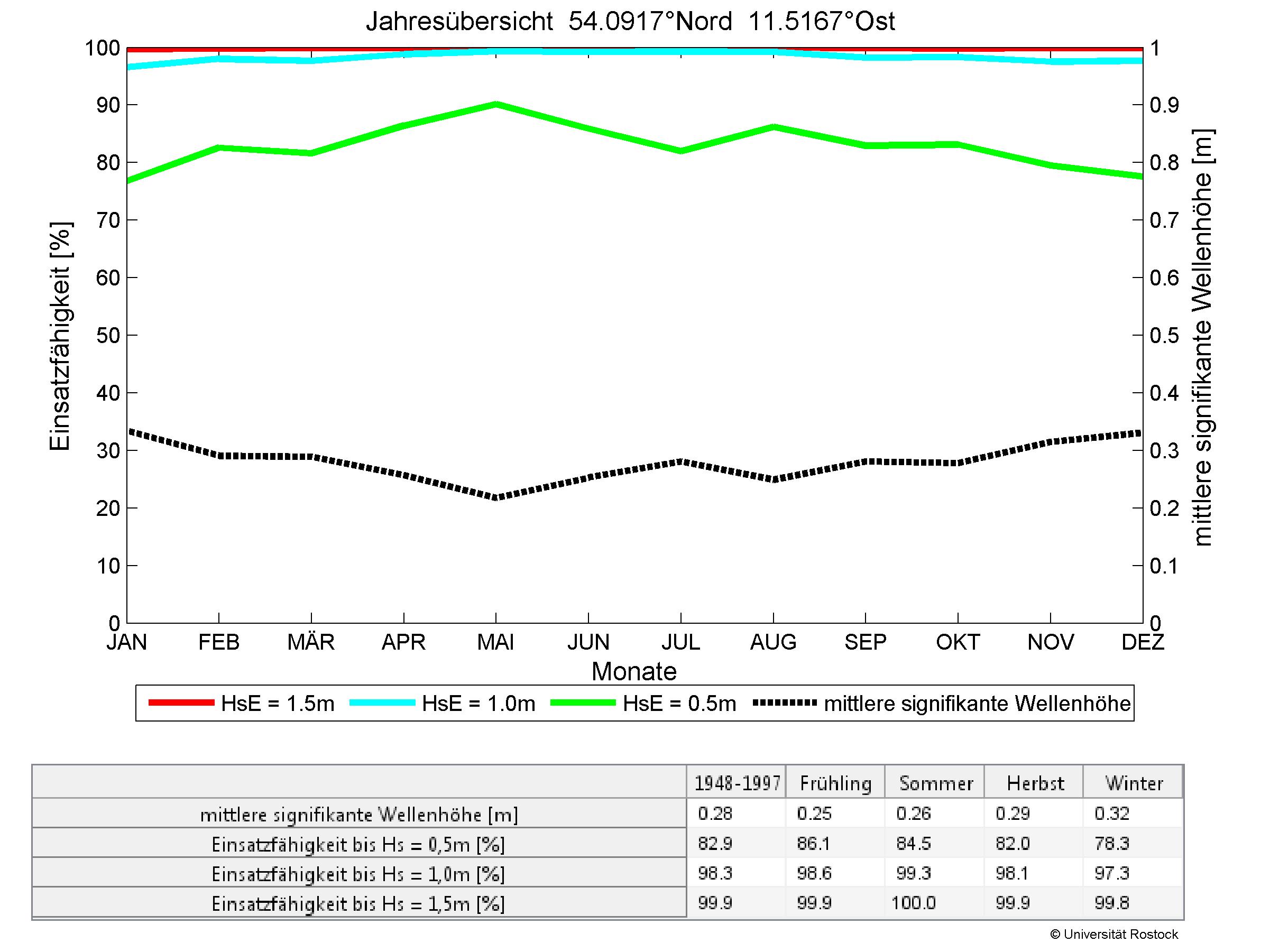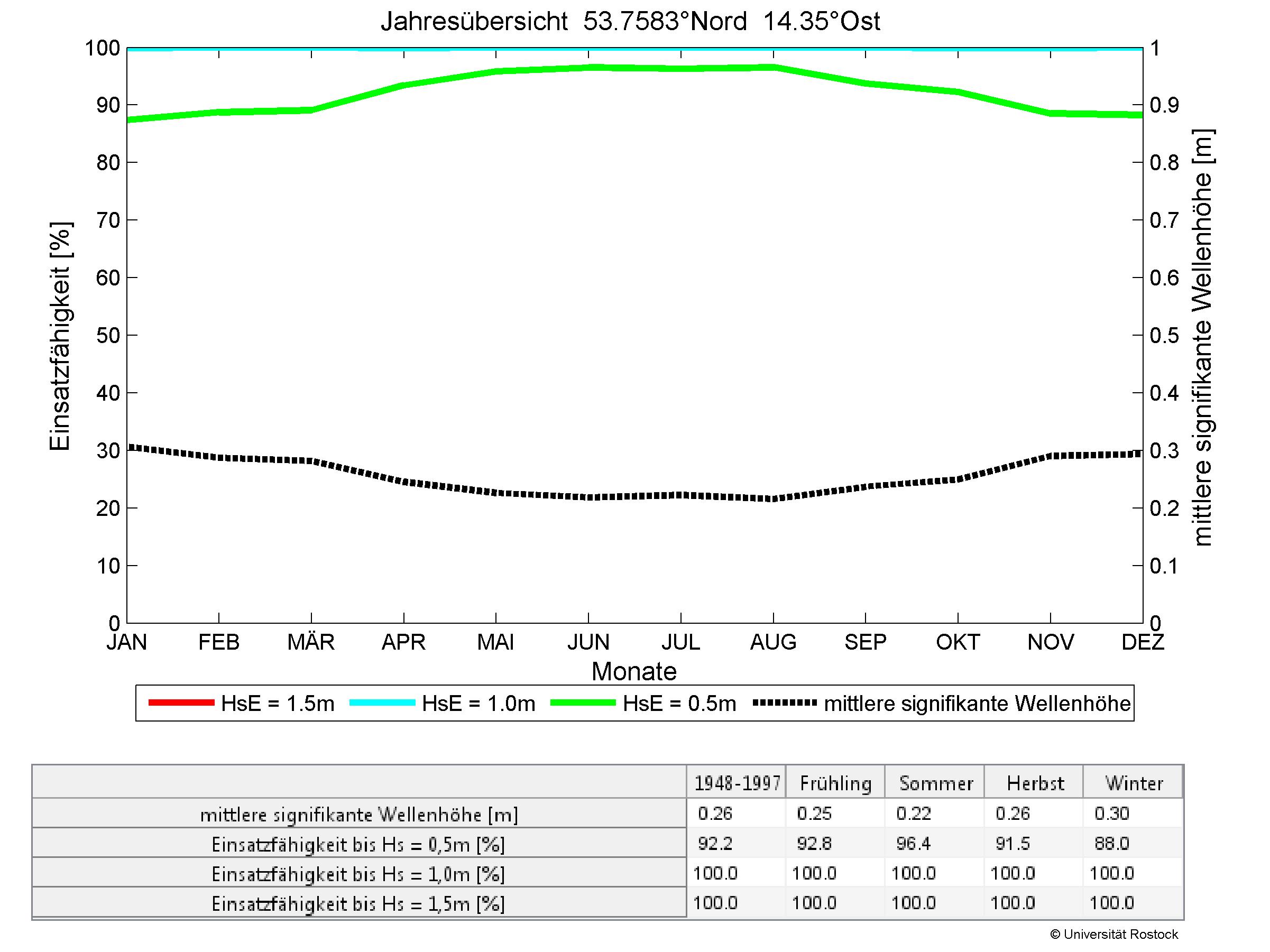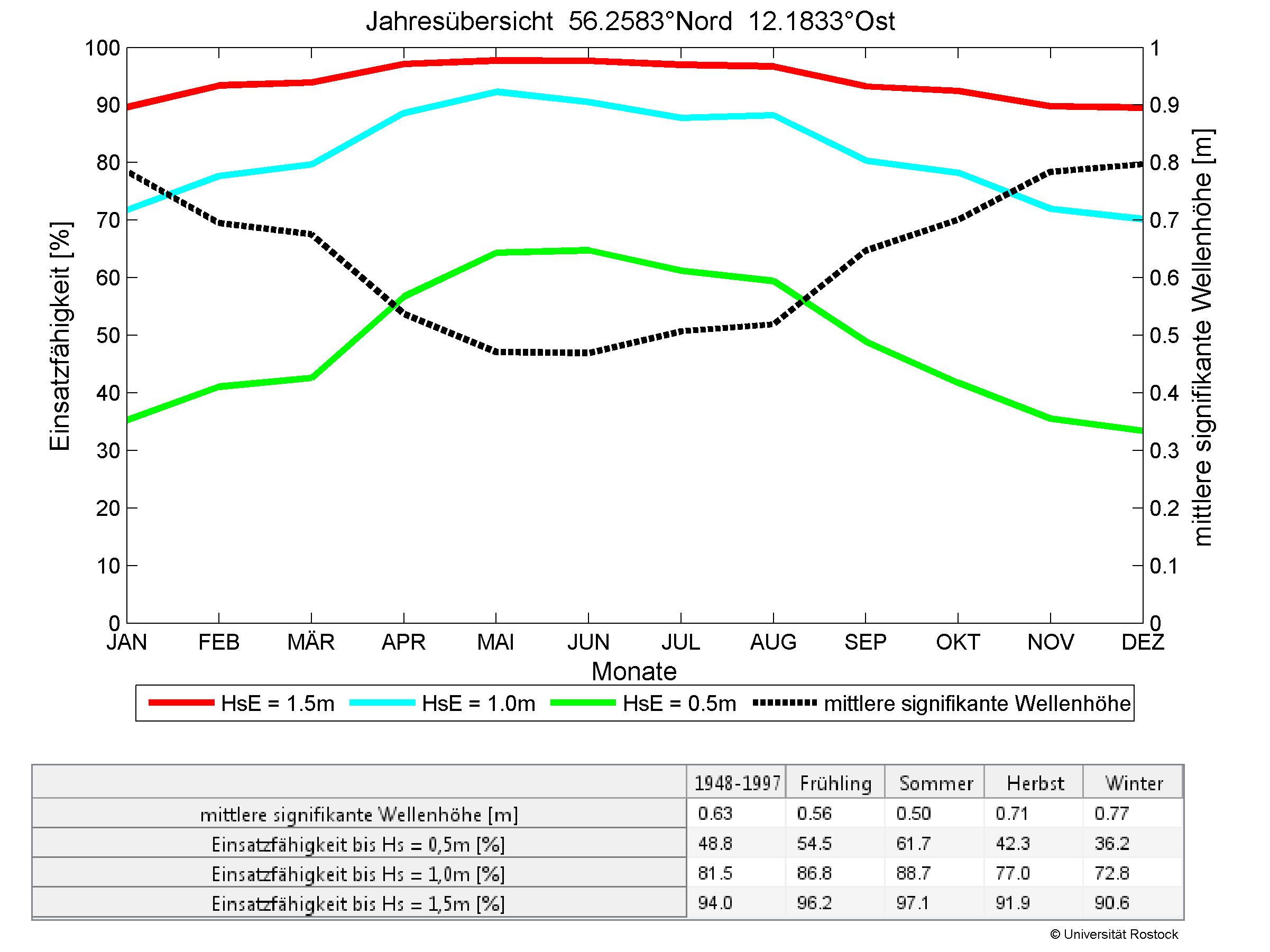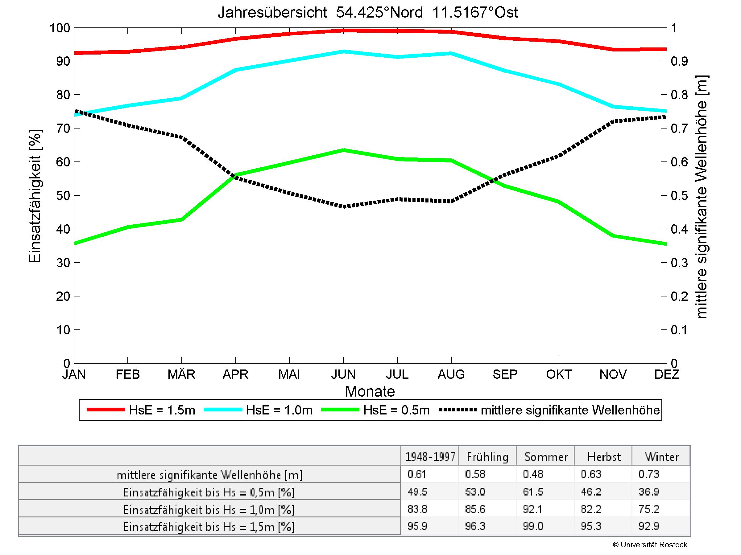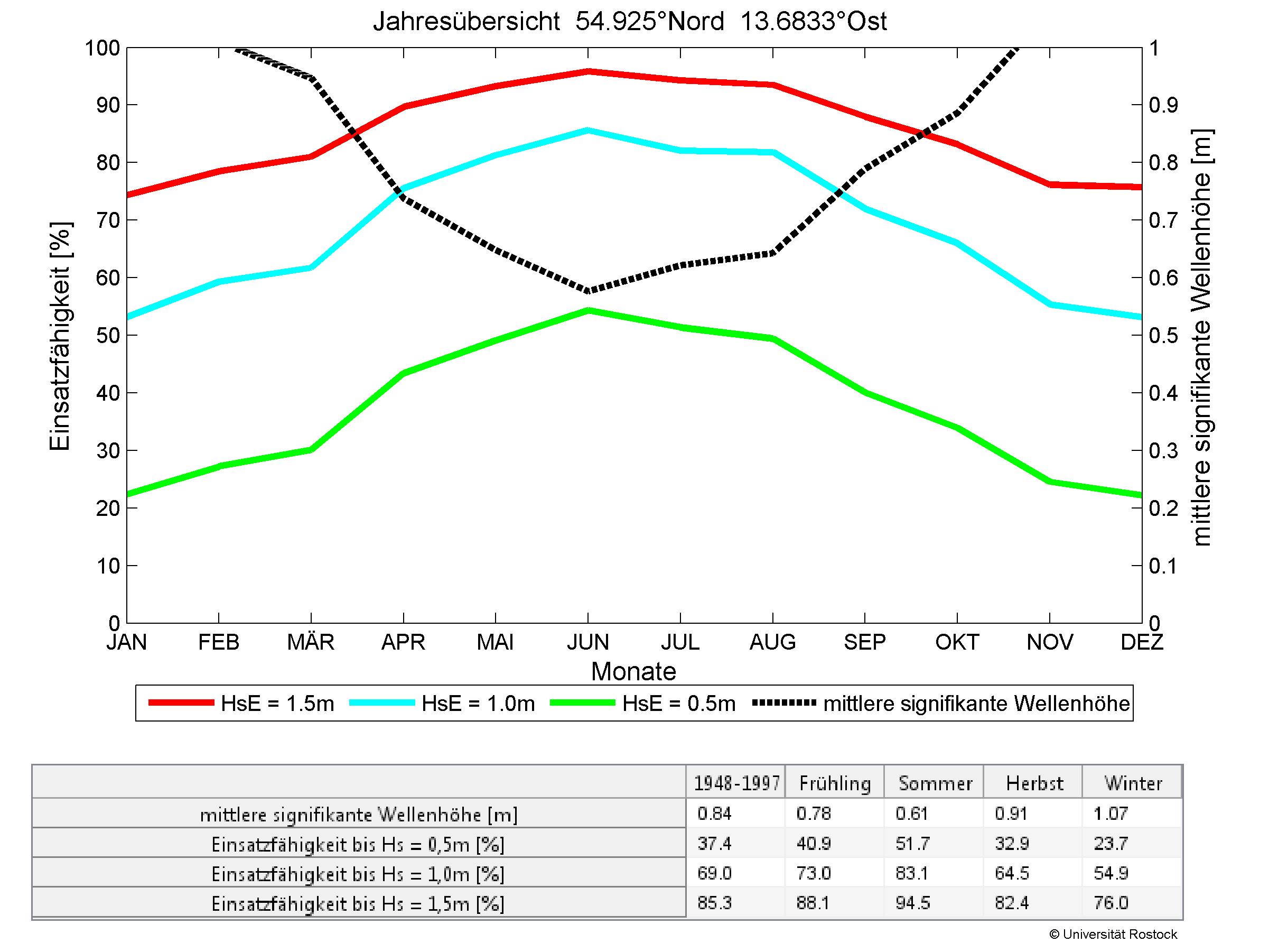 Im Forschungsprojekt MUSTOK (Jensen 2009) wurden unterschiedliche Modelle zur Ermittlung von extremen Wellenhöhen und Wasserständen an der Deutschen Ostseeküste ermittelt. Im Teilprojekt SEBOK B wurden auf Grundlage der zuvor beschriebenen Winddaten die stündliche signifikante Wellenhöhe für die Deutsche Ostsee ermittelt (Schlamkow & Fröhle 2009). Die Seegangssimulationen wurden mit dem Seegangsmodel SWAN erstellt (Booij et al. 2001). Für die Simulationen wurde eine Bathymetrie der Ostsee mit einer Auflösung Δx ≈ Δy ≈ 5,5 nm verwendet (Seifert et al. 2001). Zur Qualitätsprüfung wurden die Modeldaten mit vorhandenen Messdaten verglichen.