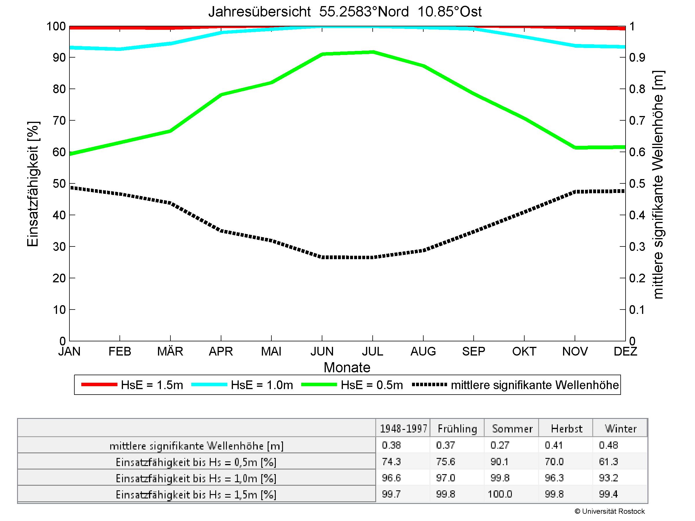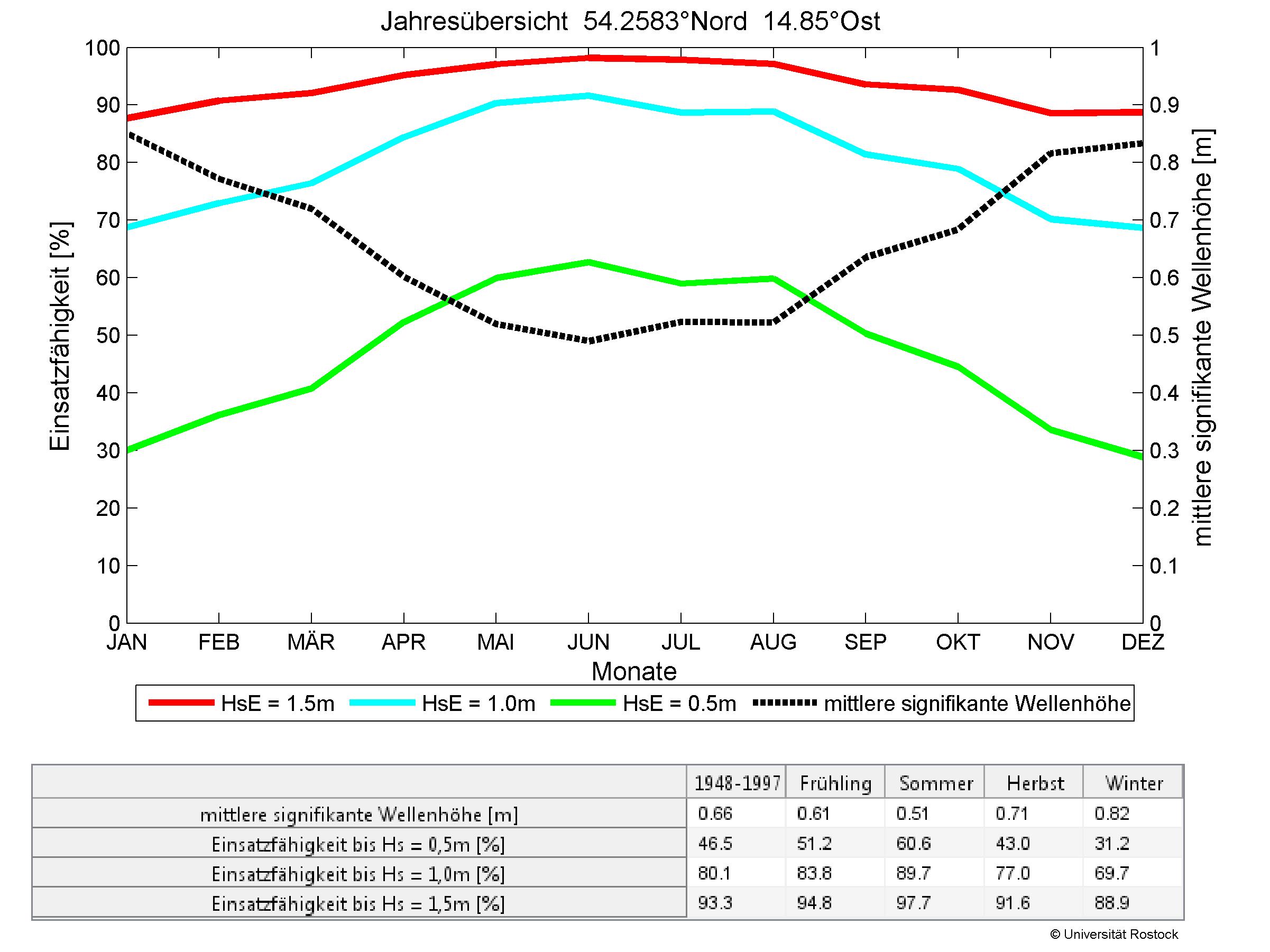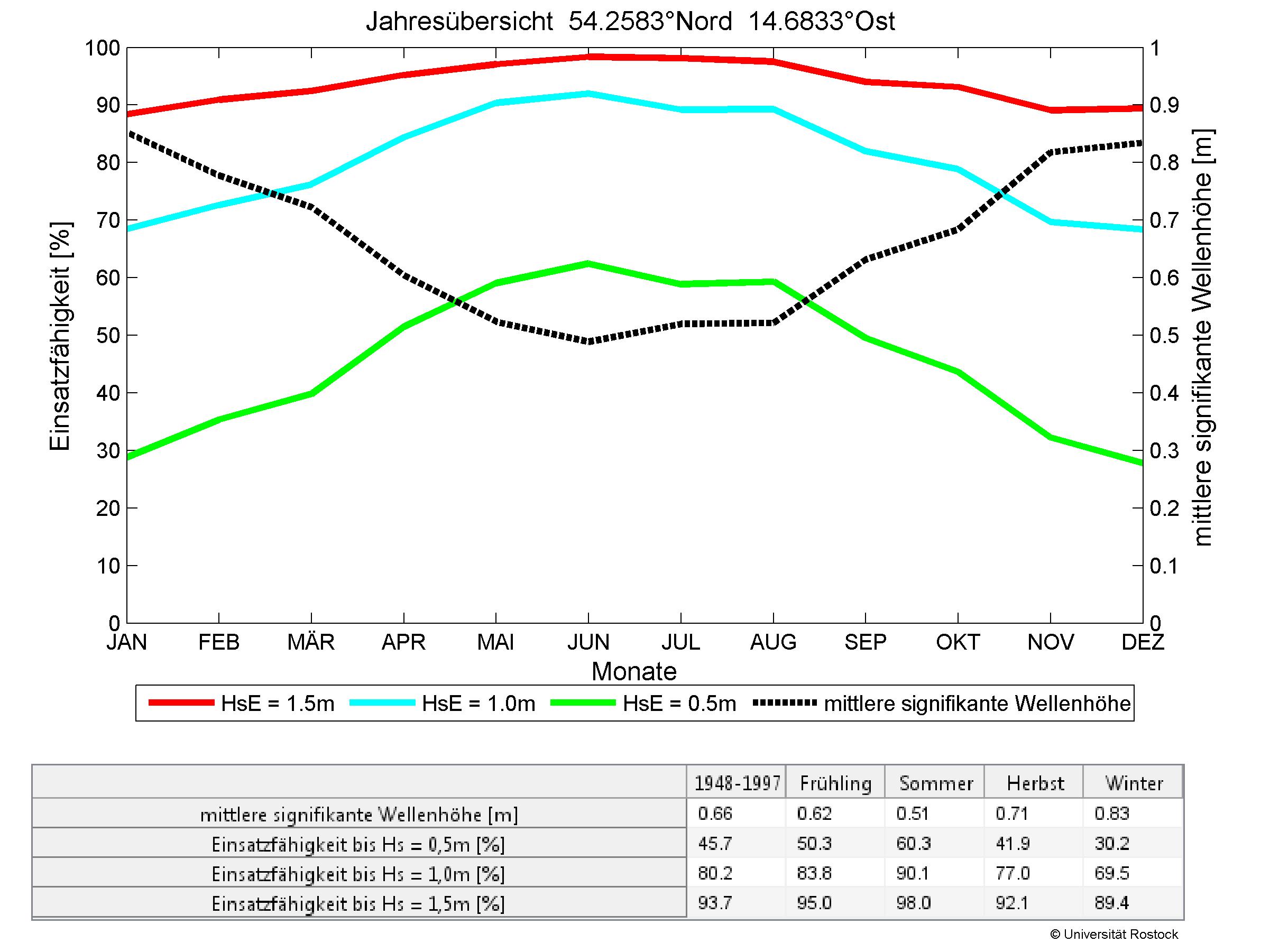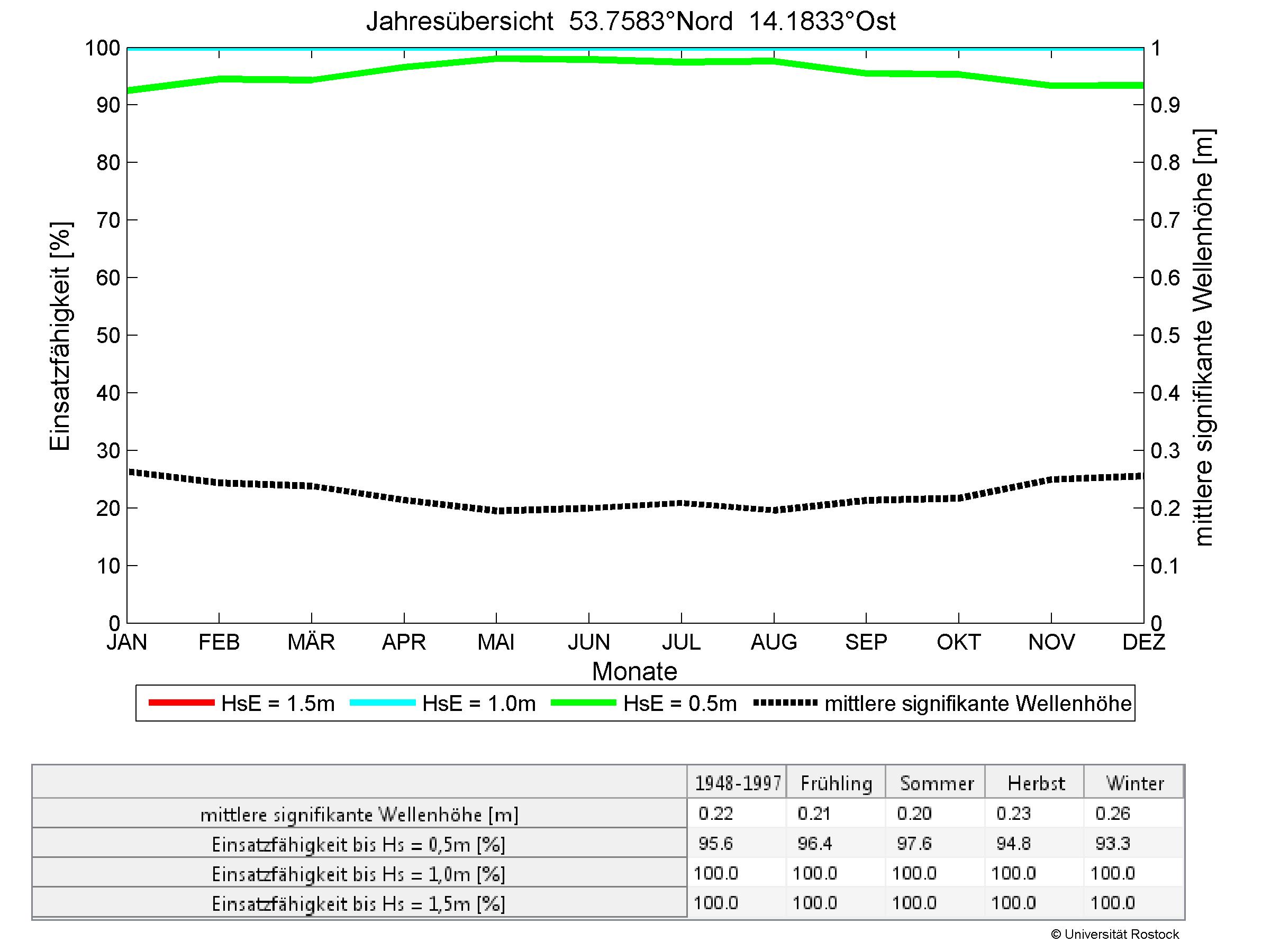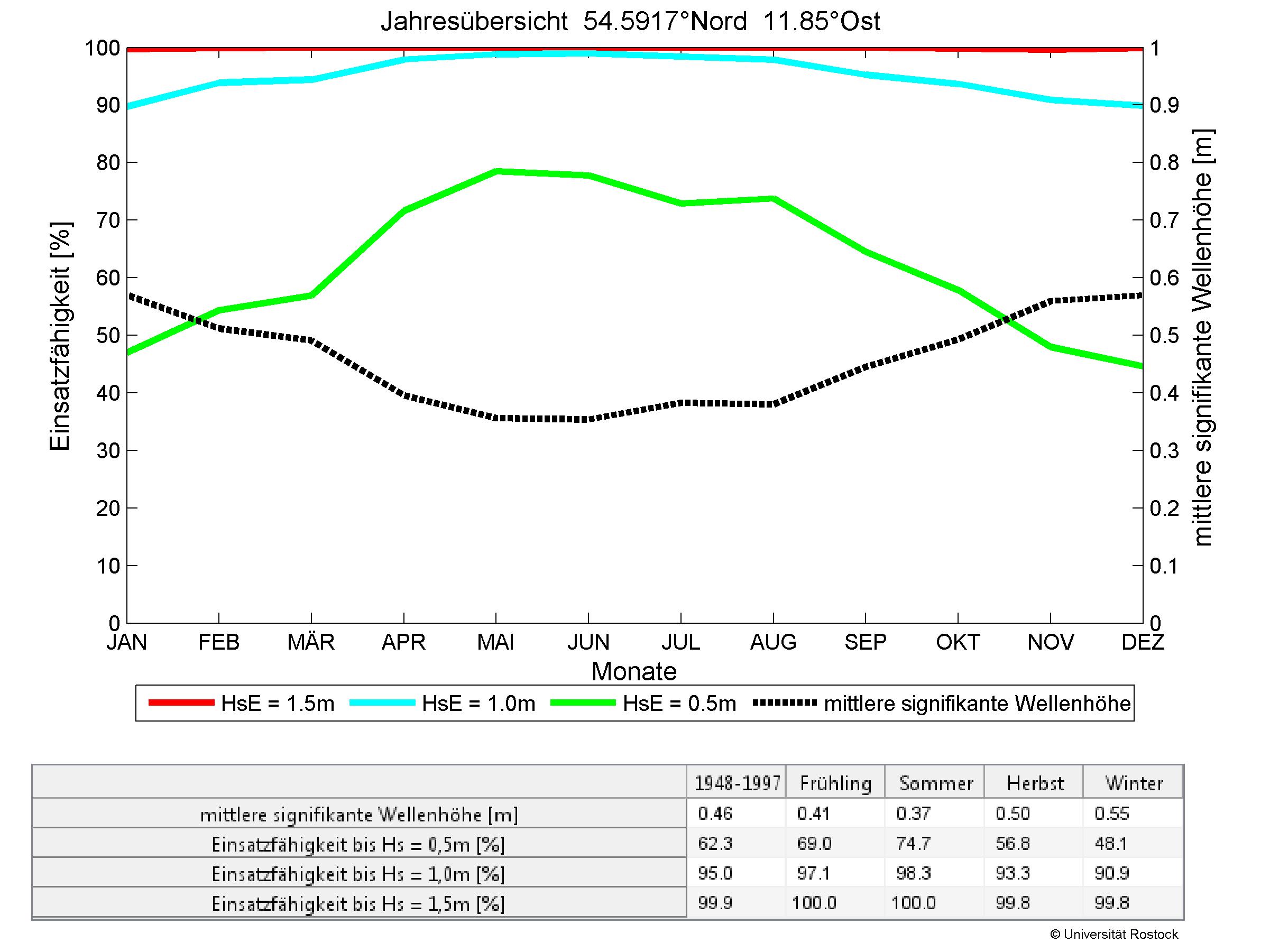 Im Forschungsprojekt MUSTOK (Jensen 2009) wurden unterschiedliche Modelle zur Ermittlung von extremen Wellenhöhen und Wasserständen an der Deutschen Ostseeküste ermittelt. Im Teilprojekt SEBOK B wurden auf Grundlage der zuvor beschriebenen Winddaten die stündliche signifikante Wellenhöhe für die Deutsche Ostsee ermittelt (Schlamkow & Fröhle 2009). Die Seegangssimulationen wurden mit dem Seegangsmodel SWAN erstellt (Booij et al. 2001). Für die Simulationen wurde eine Bathymetrie der Ostsee mit einer Auflösung Δx ≈ Δy ≈ 5,5 nm verwendet (Seifert et al. 2001). Zur Qualitätsprüfung wurden die Modeldaten mit vorhandenen Messdaten verglichen.