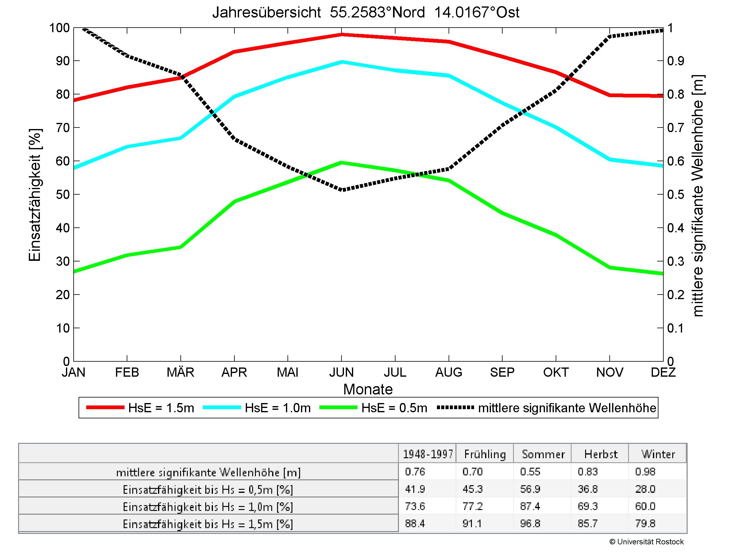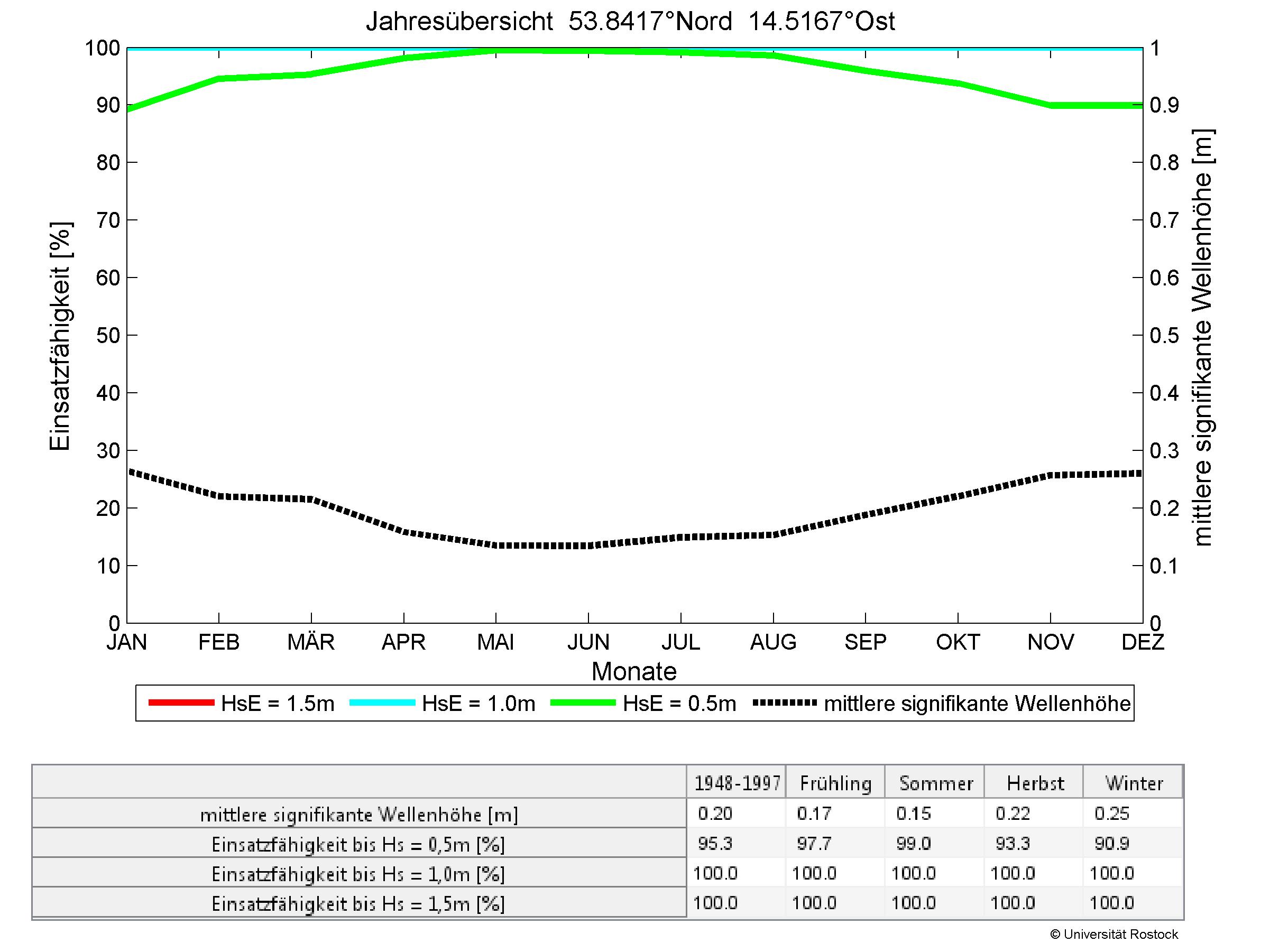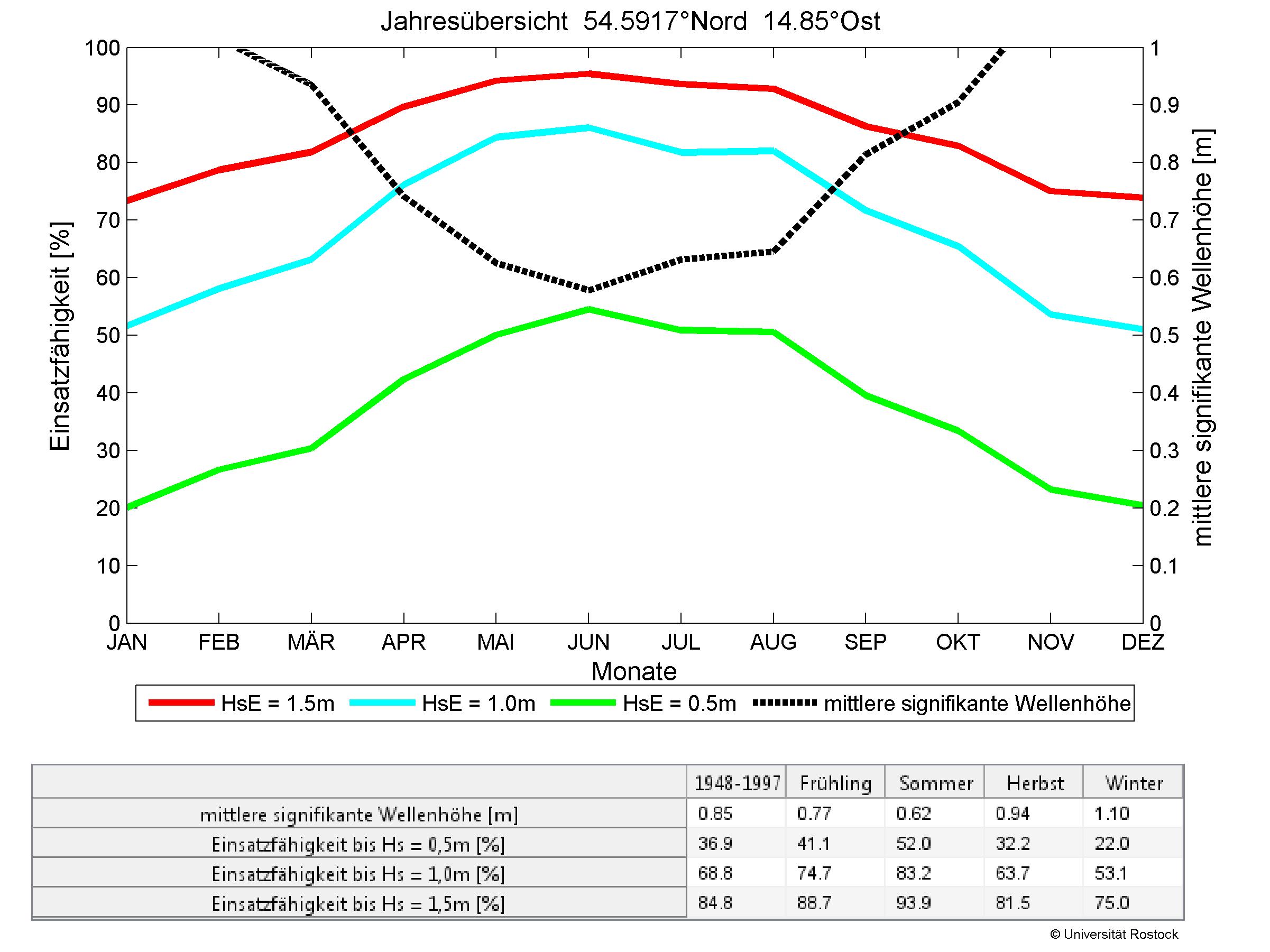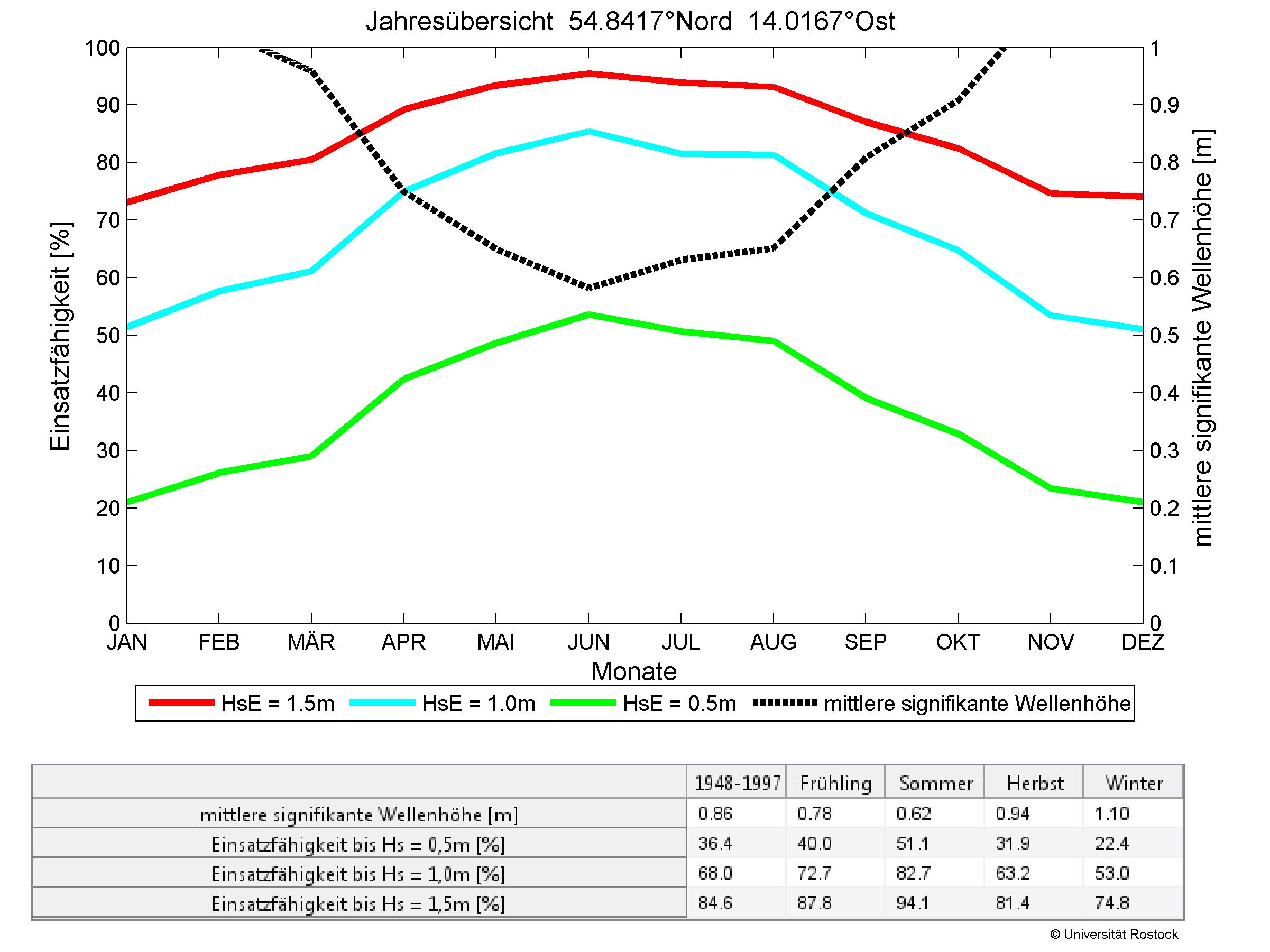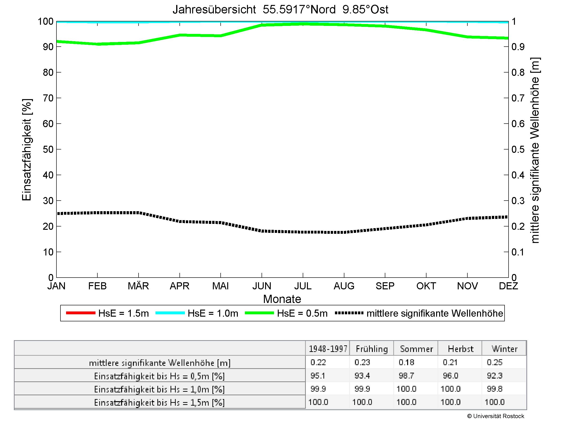 Im Forschungsprojekt MUSTOK (Jensen 2009) wurden unterschiedliche Modelle zur Ermittlung von extremen Wellenhöhen und Wasserständen an der Deutschen Ostseeküste ermittelt. Im Teilprojekt SEBOK B wurden auf Grundlage der zuvor beschriebenen Winddaten die stündliche signifikante Wellenhöhe für die Deutsche Ostsee ermittelt (Schlamkow & Fröhle 2009). Die Seegangssimulationen wurden mit dem Seegangsmodel SWAN erstellt (Booij et al. 2001). Für die Simulationen wurde eine Bathymetrie der Ostsee mit einer Auflösung Δx ≈ Δy ≈ 5,5 nm verwendet (Seifert et al. 2001). Zur Qualitätsprüfung wurden die Modeldaten mit vorhandenen Messdaten verglichen.